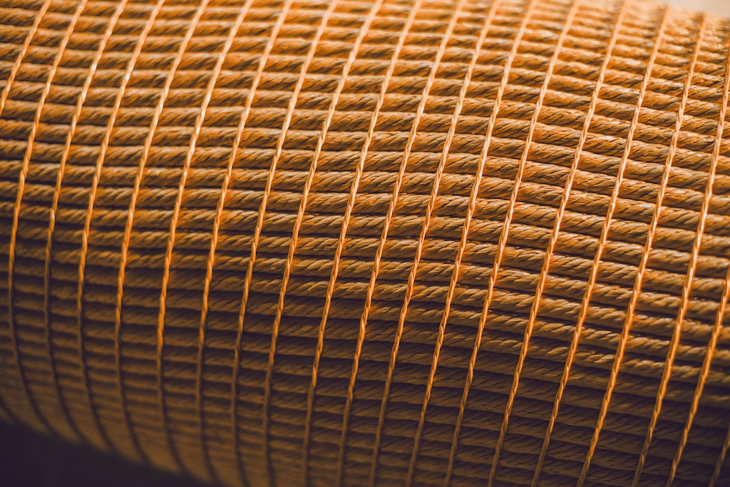 - 型崩れ防止の補強 表面に縄と同色の糸を丁寧に巻き付け、持ち上げた際にも形状が崩れないようしっかりと固定しました。