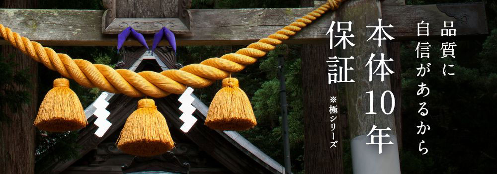ポリエチレンを使用した極(きわみ)シリーズのしめ縄は、10年保証。